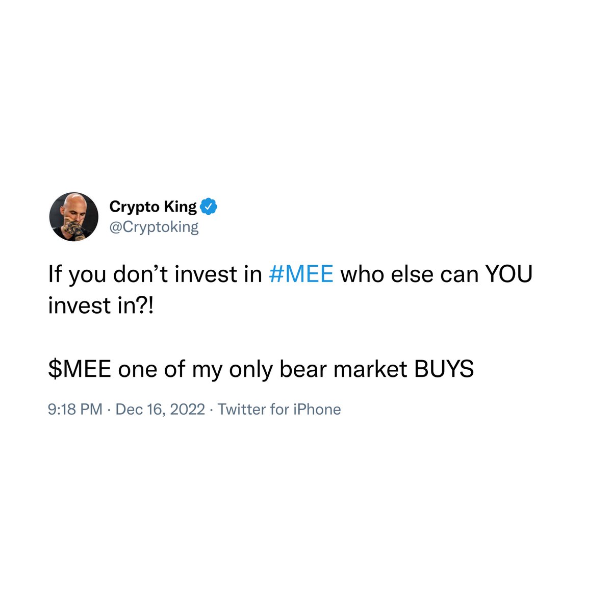 Werdykt. No cóż, ocenę pozostawiam Tobie. Dla mnie to kolejny przypadek gdzie influencerzy mogą tanim kosztem zarobić coś w bessie. A może uważasz, że $MEE jest ok? Tylko nie mów, że obiecali spalać tokeny i zapowiedzieli współpracę z Google 😂