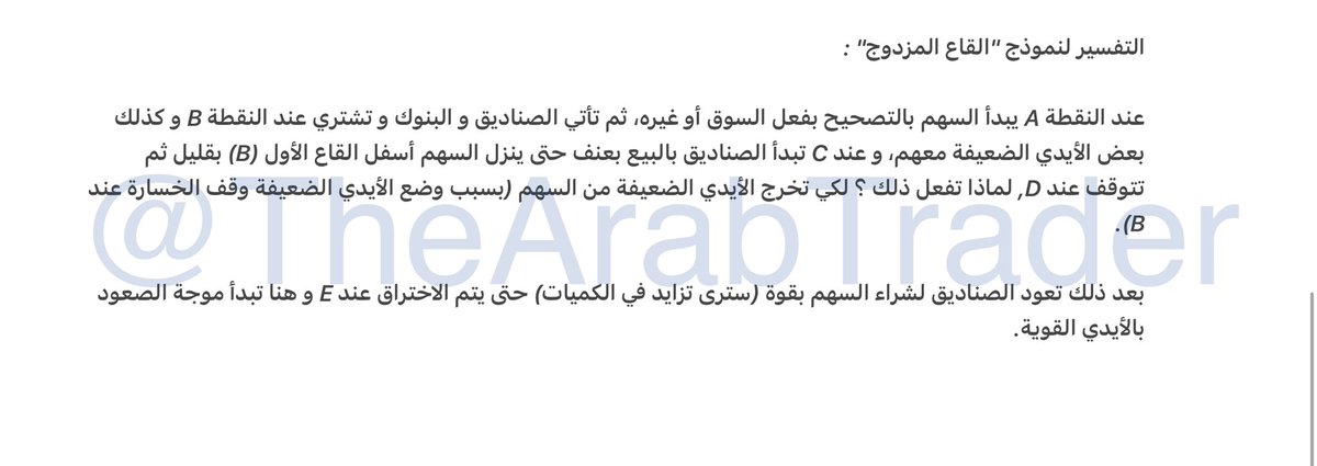 ثانيا نموذج “القاع المزدوج”، كثير الشيوع لكنه نموذج قوي يشبه حرف ال W.