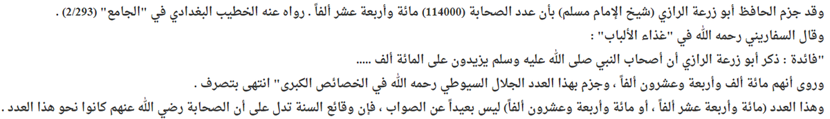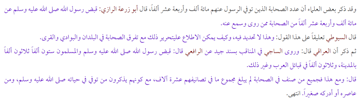 أن عدد الصحابة عند موت النبي ﷺ تراوح من 60 إلى 100 ألف أو يزيدون