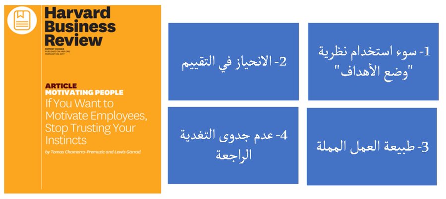- يجهل المدراء بأن تحفيز الموظفين يختلف من شخص لآخر. فمثلاً,تحديد الاهداف مفيد عندما يميل الموظف للتحفيز الخارجي"Extrinsic motivation"