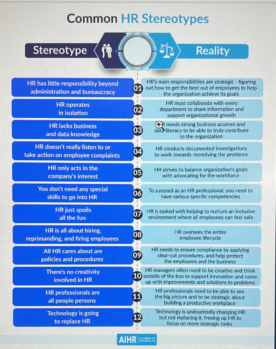 اوضحت (AIHR) الاكاديمية الخاصه بتطوير انظمة #الموارد_البشرية في صفحتها على الويب ١٥ قصة مختلفة متكررة عن الموارد البشرية ليست صحيحة ، وساتكلم بالتفصيل دعما لموظفي وموظفات الموارد واعطاء كل ذي حق حقه وبالله التوفيق ( يتبع )
