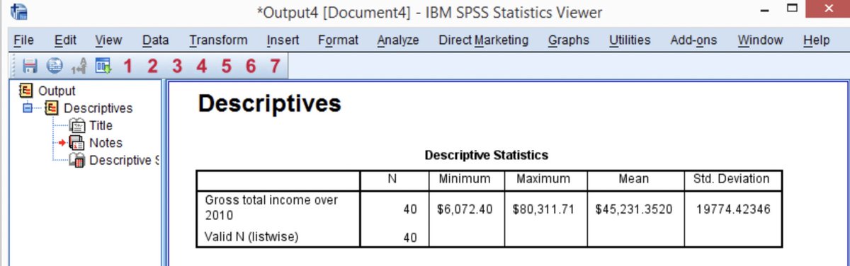 ✨الان يمكن اجراء بعض الاحصاءات الوصفية من خلال قائمة analyze < descriptive statistics وحساب الوسط والوسيط والانحراف المعياري واعلي قيمة واقل قيمة ويظهر في محرر البيانات ويمكن اعداد تقرير كامل في ملف ورورد بالنتائج التي تظهر بناء على معرفتك بالاحصاء والتحليل