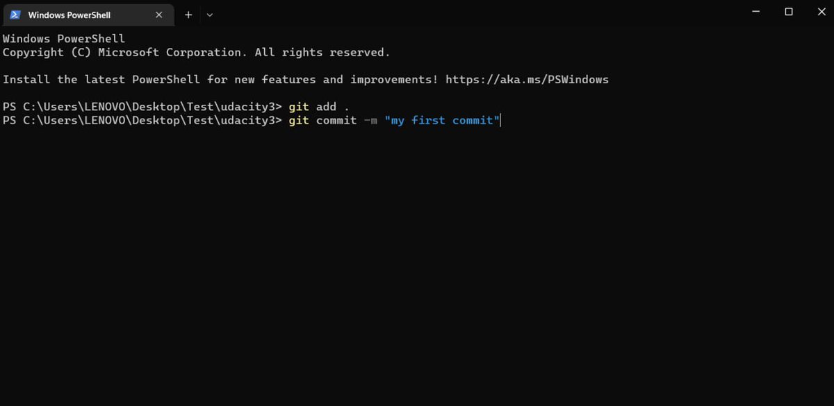 لازم الامرين تكتب بالترتيب ما يشتغل واحد بدون الثاني، الاول ما يعطيك اوتيوت بس يعطي خبر للـ git انه فيه اضافة خطوة قادمة، الثانية تضيف الخطوة على شكل كومنت