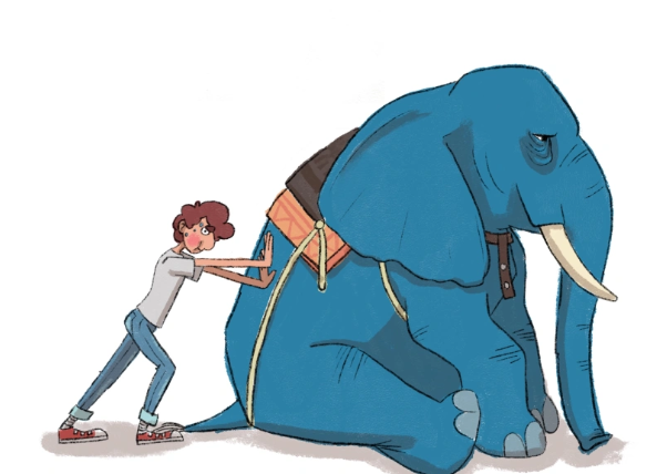 الفيل هو كياننا العاطفي، تكمن الراحة في الوضع الراهن، حيث جزء منا لا يريد أن نتغير.