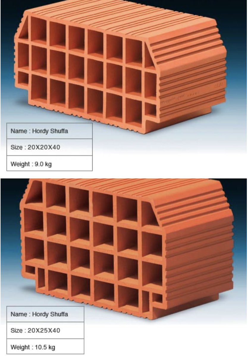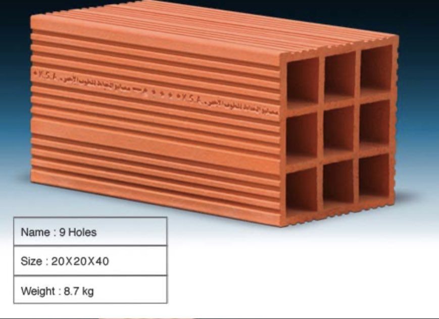 وهنالك عدة مقاسات للطوب الاحمر الخاص بالجدران الغير حاملة فهو يأتي اما بسماكة ٢٠ سم او ١٠ سم او ١٥ سم حسب التصميم المعماري وايضا يأتي بأطوال مختلفة اما ٤٠ سم او ٣٠ سم او ٢٠ سم وذلك توفيرا للهدر.