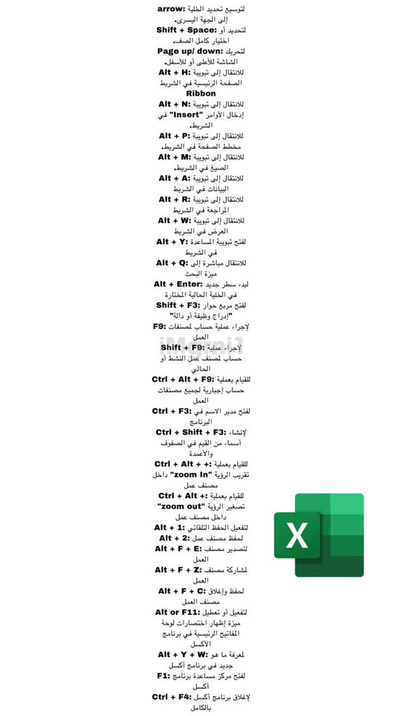 • كتاب عربي مفيد جداً يحتوي على أكثر من 200 اختصار من اختصارات برنامج الاكسل 👍🏻❤️