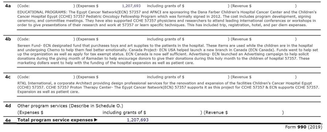 مستشفي57357عاملة جمعية في أمريكا لجمع التبرعات من هناك وطبعاً أي مواطن أمريكي حقه يشوف الإقرارات الضريبية للجمعية علشان يعرف فلوسه بتتصرف فين