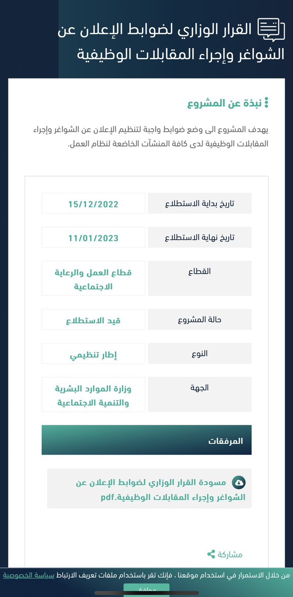 لذا كان لِزاماً على المشرّع سن نظام خاص بعملية الاعلانات الوظيفية فصدر مسودة "مشروع لضبط الاعلانات والشواغر الوظيفية واجراء المقابلات الشخصية"