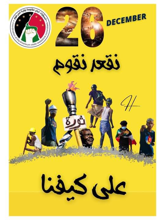 نعلن عن تأجيل مليونية 25 ديسمبر 2022م المجيدة المعلنة سابقاً ، وسنخرج إلى الشوارع في يوم 26 ديسمبر .