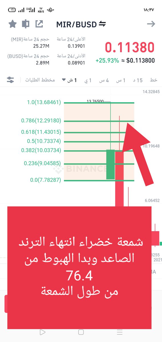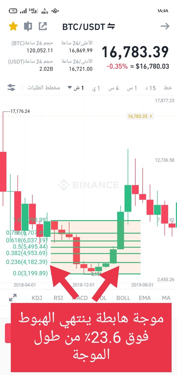 دام السعر تحت 23.6٪ من طول الموجة الهابطة فالاتجاه يعتبر نازل ولا يزال للهبوط بقية