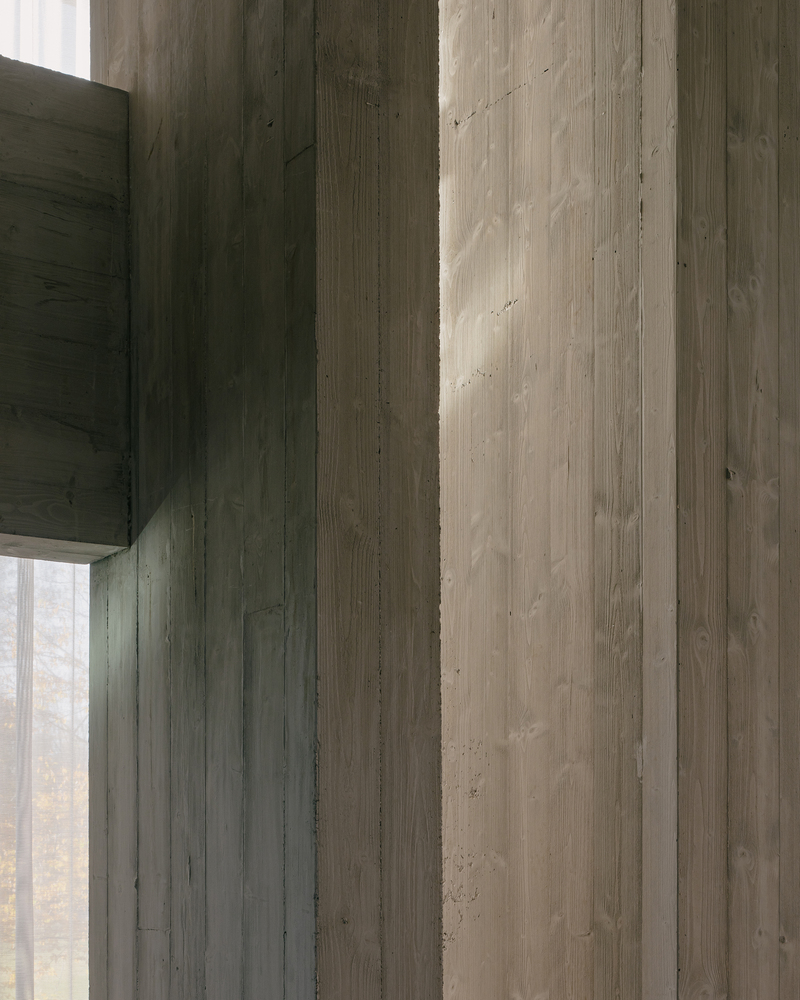 * يتكون هيكل المبني من الخرسانه الناعمه المشكله بعنايه بالواح الخشب والتي تم اختيار نسب خلطها بعناية لتظهر بهذا الشكل
