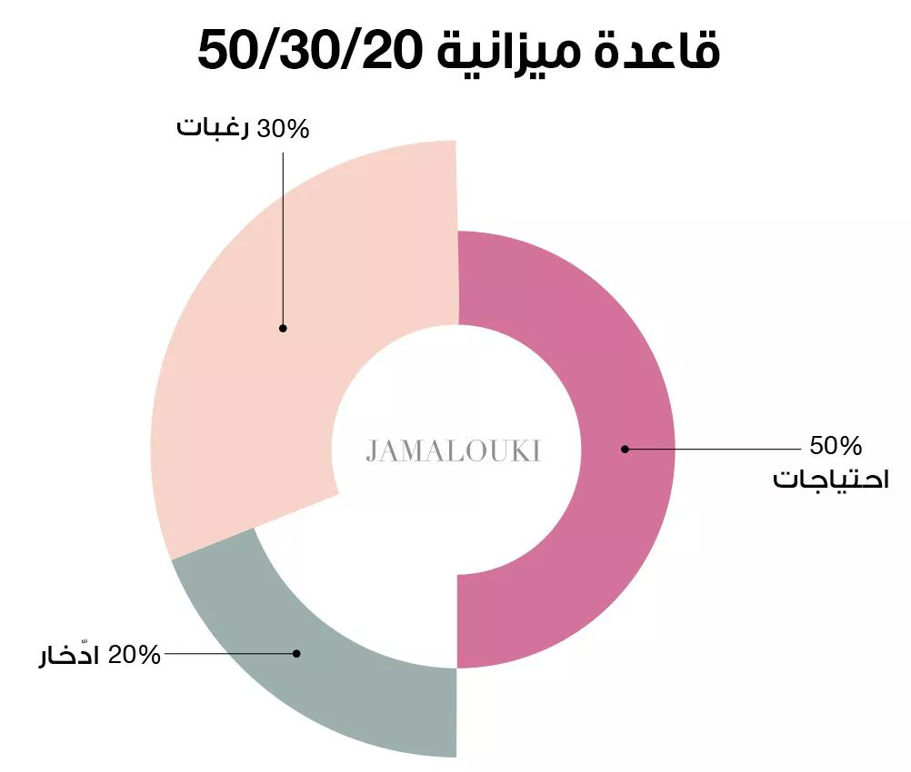 – 20% للمدخّرات والتي تنقسم بين خطط للادخار المستقبلية أو الاستثمار أو حتى حالات الطوارئ