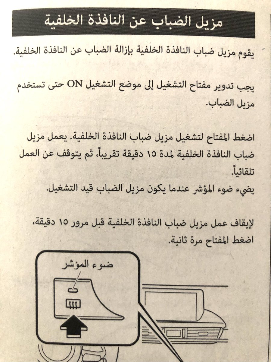 - إذا ركبتي السيارة وما قدرتي تشوفين من القزازة اللي ورى بسبب الرطوبة والضباب دوري هذا الزر واضغطيه وبعد دقيقتين بيروح الضباب ..