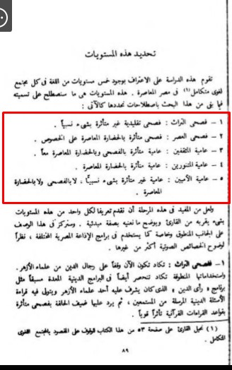 مصطلح العربية التراثية يعني إيماننا بمستويات اللغة كما نجدها في كتاب مستويات العربية المعاصرة في مصر للسعيد بدوي وهي مقسمة وفق الصورة أدناه