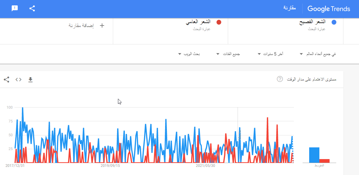 تجربة صغيرة بمؤشرات غوغل. الفصيح غالبٌ عمومًا