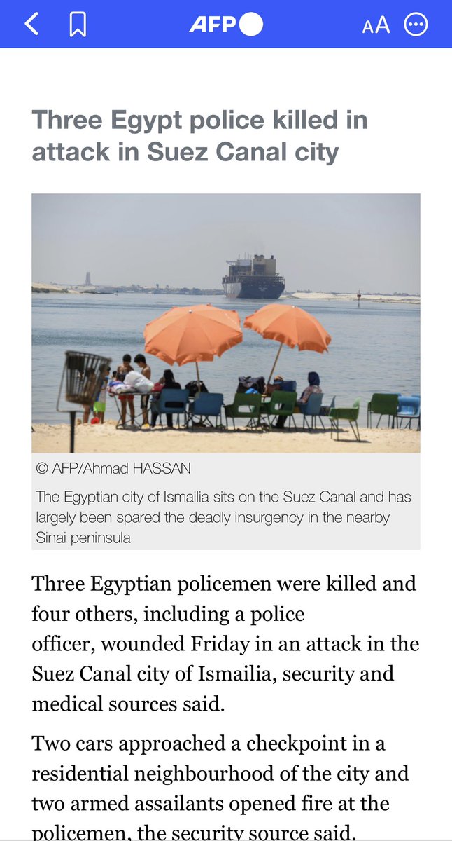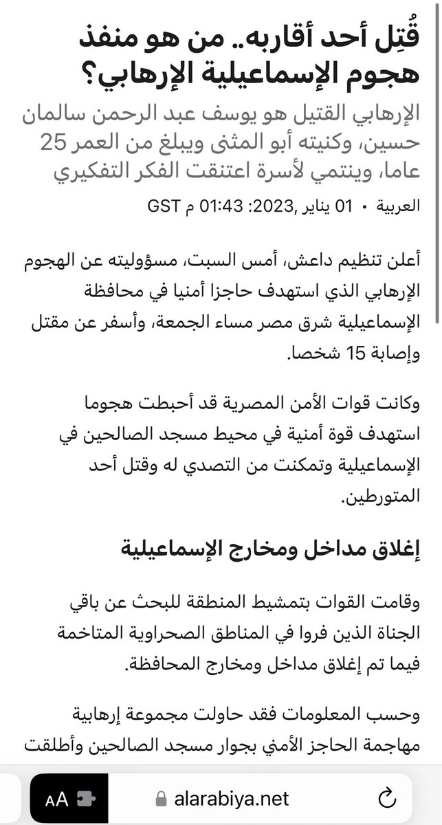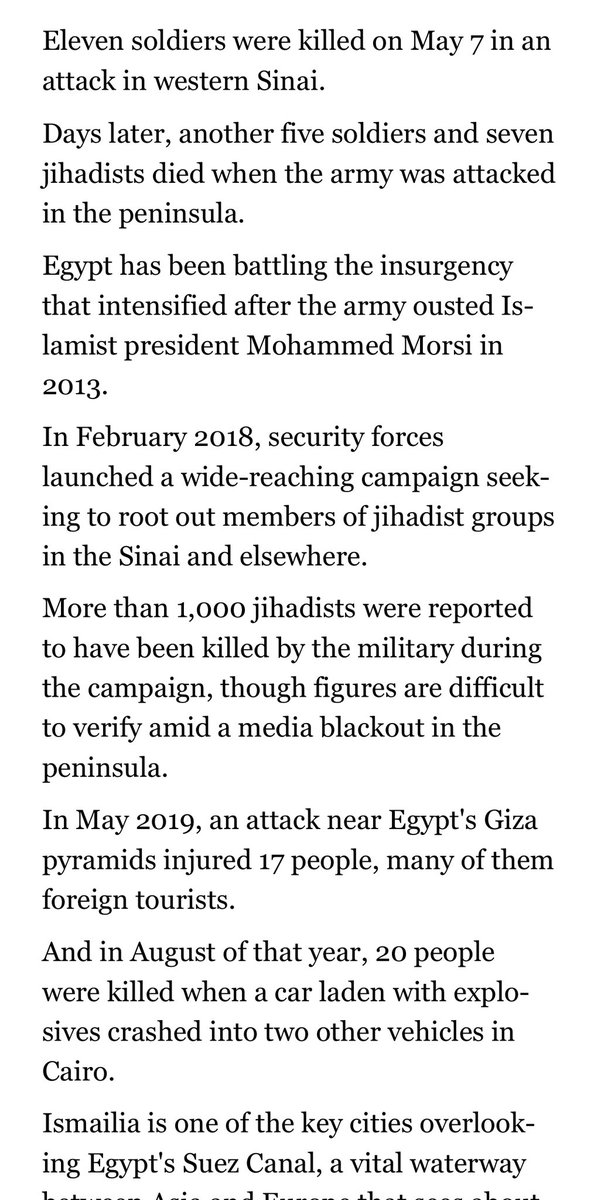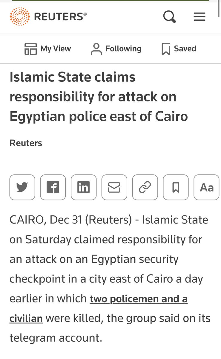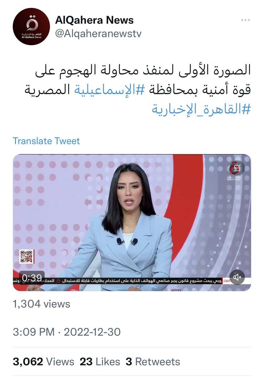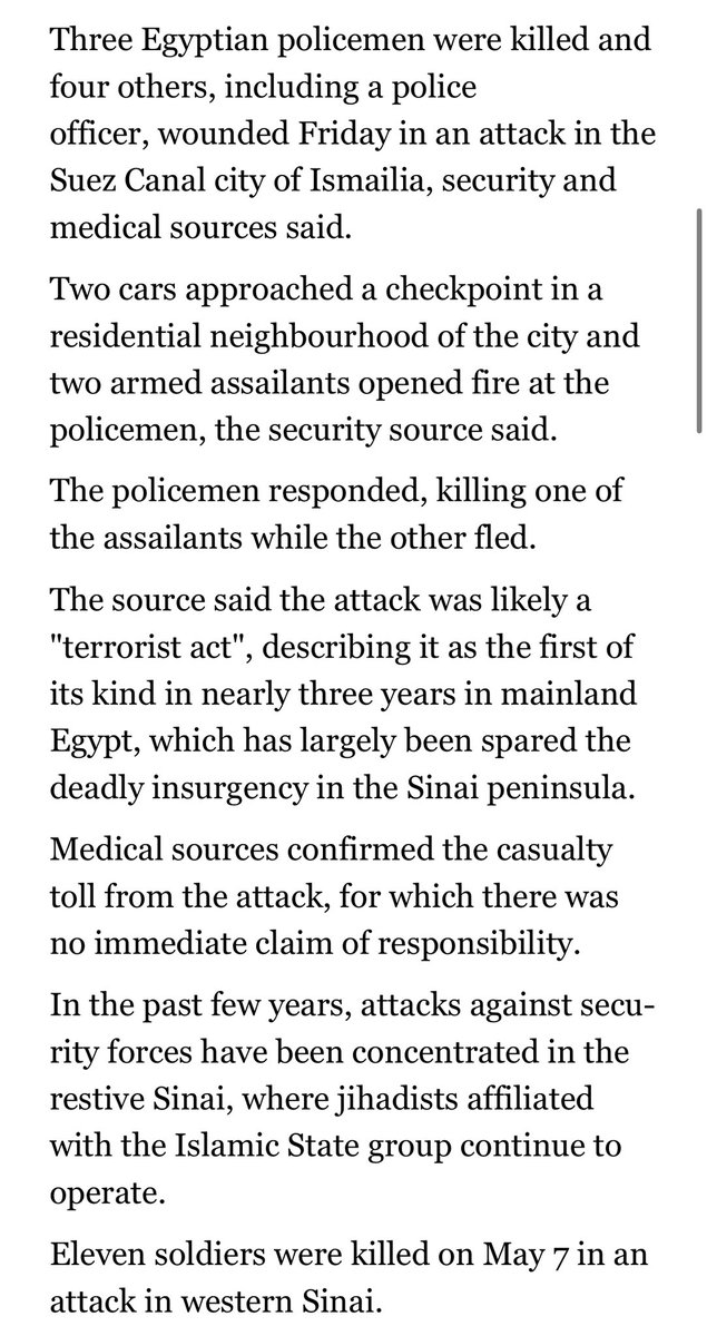 ٥- اعتمدت رويترز على مصادر في وزارة الداخلية ومديرية أمن #الإسماعيلية