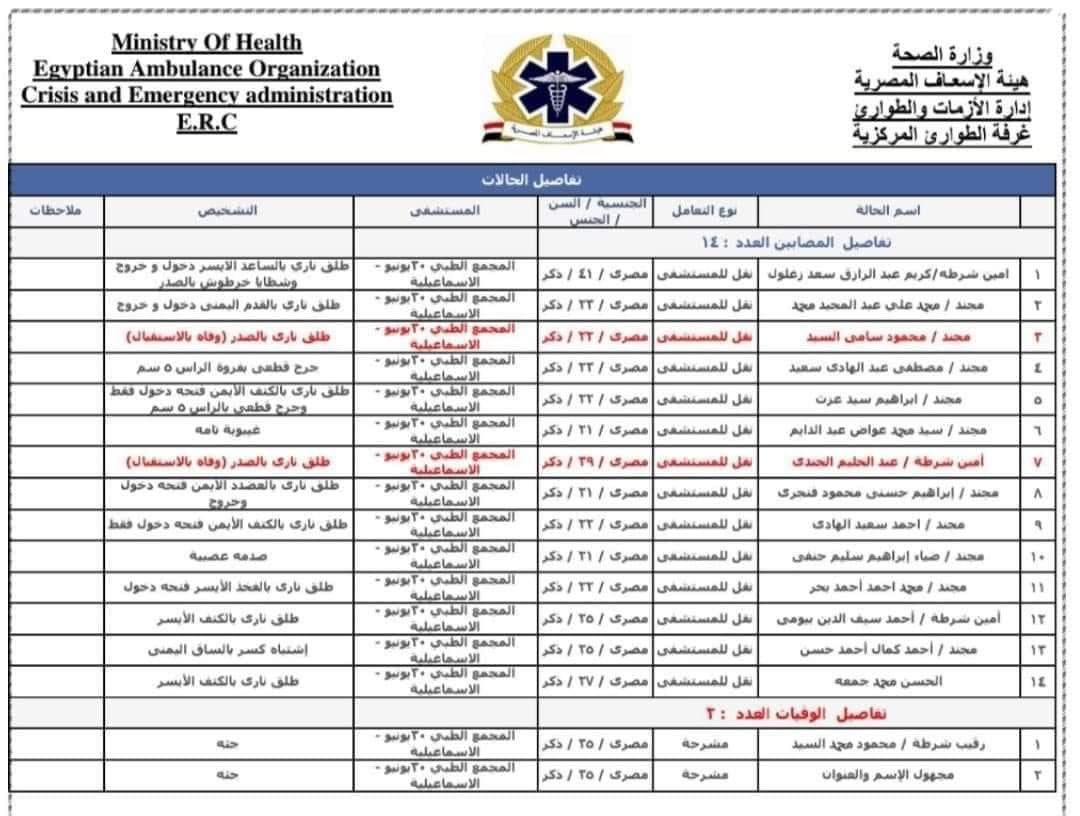 مرفق بيان وزارة الصحة عن المصابين وحالات الوفاة.