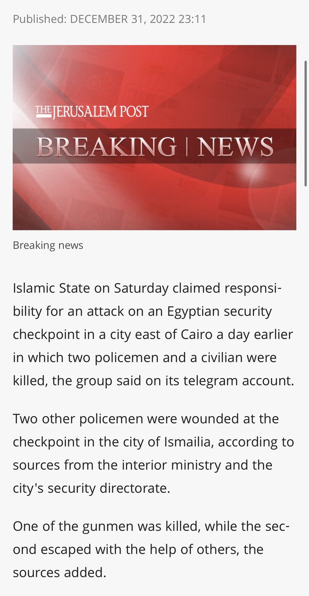 أنباء غير مؤكدة عن استشهاد ضابط و ٣ مجندين وصاحب كشك في حادث كمين الإسماعيلية. رحم الله الجميع. #الإسماعيلية