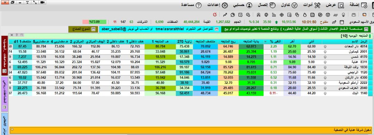 مؤشر التدبيلات احد ادوات منصة الكنز الاحترافيه يعطيك مناطق التميز ومنطقة الدعم والمحافظه على الارباح في حال التراجع على جميع الفواصل كما نشاهد هنا سهم تنميه وسبق وتابعناه من مناطق الستينات كما هو موضح في رسائل سابقه عن السهم