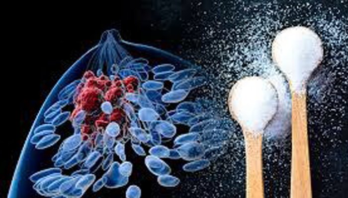 والسكر الأبيض الغذاء المفضل الأول للطفيليات والديدان المعوية والبكتيريا الضارة والكانديدا، والتي يزيد تكاثرها عند تناول السكر الأبيض، وكما هو معروف ان السكر الأبيض هو الغذاء الرئيسي للخلايا السرطانية والأورام لأن هذه الأخيرة لديها برنامج تكاثري باضطراد وبأضعاف.