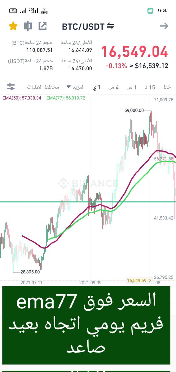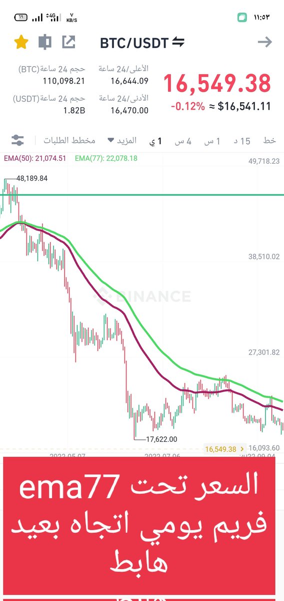 اسفل ema77 فريم يومي الاتجاه العام هابط