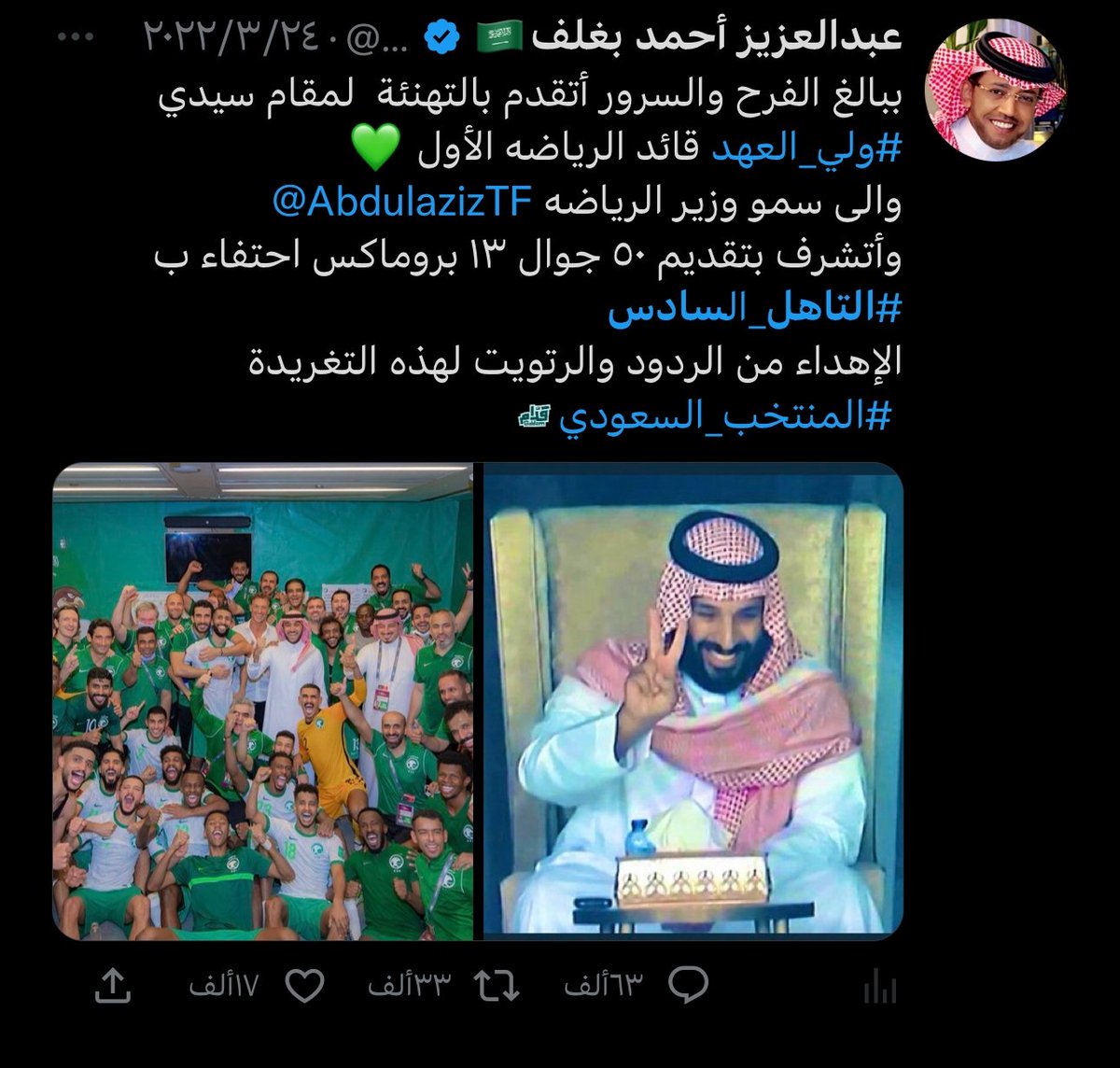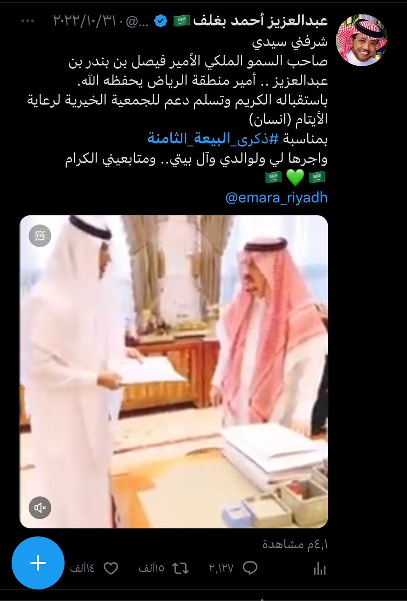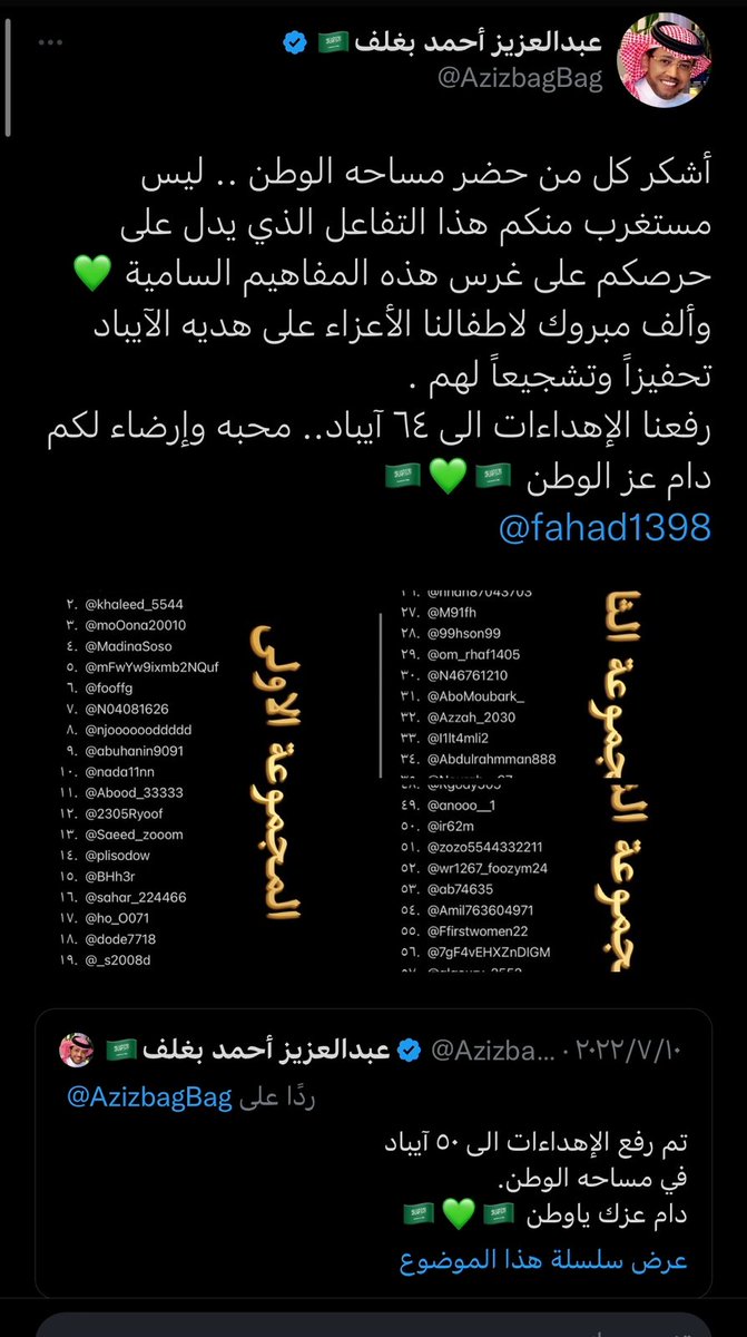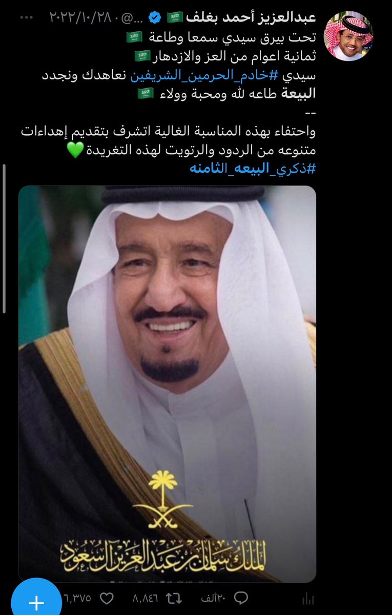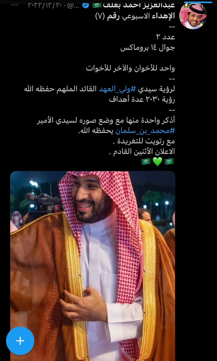 صاحب التجارب الفريدة والمميزة صاحب العطاء وابن الوطن البار ، اسال الله يكون عام 2023 ممتلئ بالخير و السعادة لك ، وان يديمك ابن بار للوطن ، وان يديمك لنا اخ وصديقا وعزيزا لقلوبنا 🇸🇦💚🇸🇦
