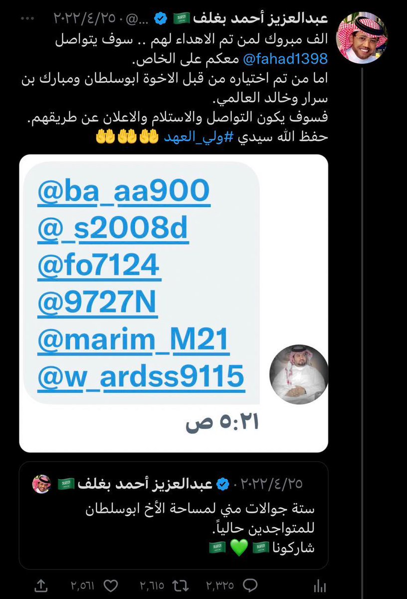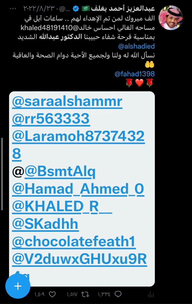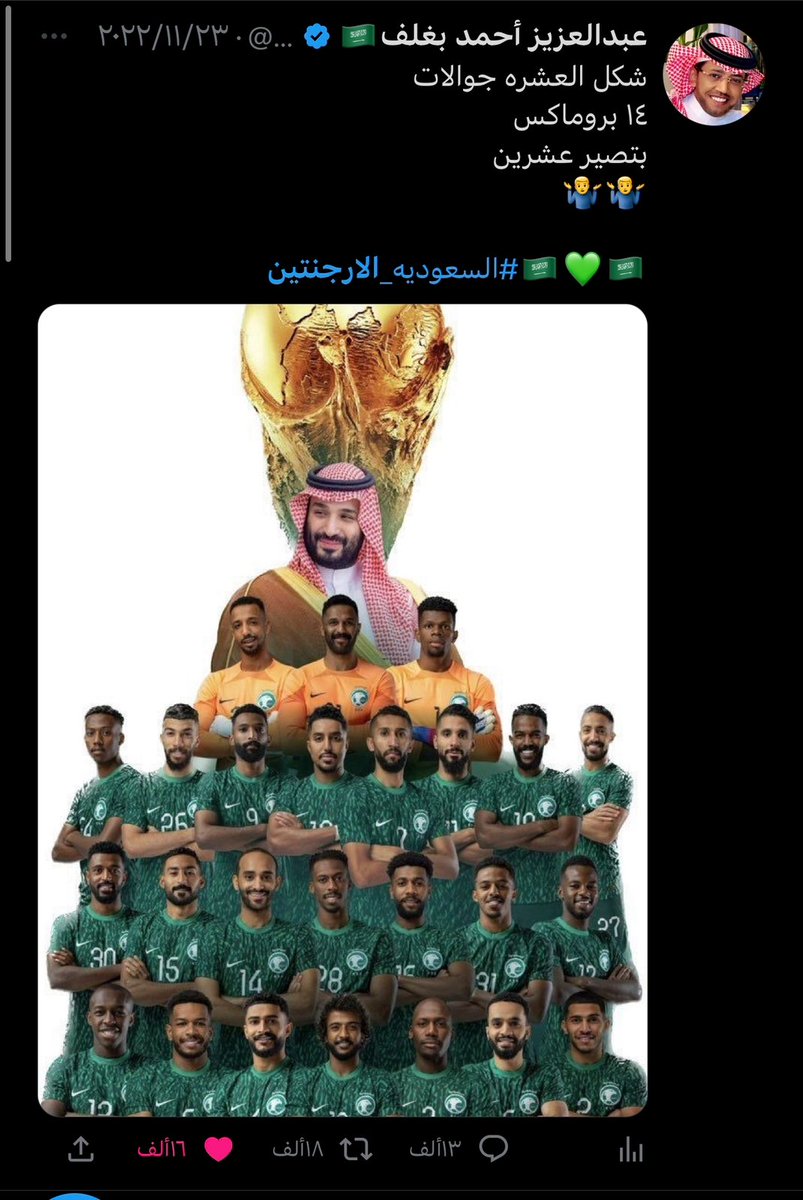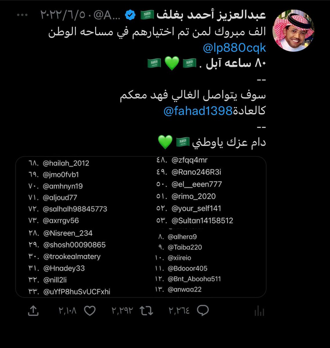 صاحب التجارب الفريدة والمميزة صاحب العطاء وابن الوطن البار ، اسال الله يكون عام 2023 ممتلئ بالخير و السعادة لك ، وان يديمك ابن بار للوطن ، وان يديمك لنا اخ وصديقا وعزيزا لقلوبنا 🇸🇦💚🇸🇦