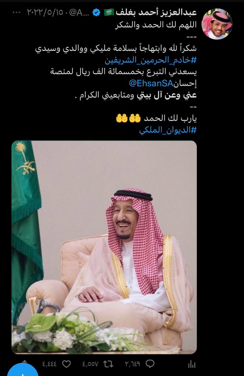 فرحًا و أبتهاجاً بمناسبة شفاء سيدي الملك سلمان .. قدم ٥٠٠ الف للمنصات الخيرية شاكراً الله على سلامة ملكنا ..
