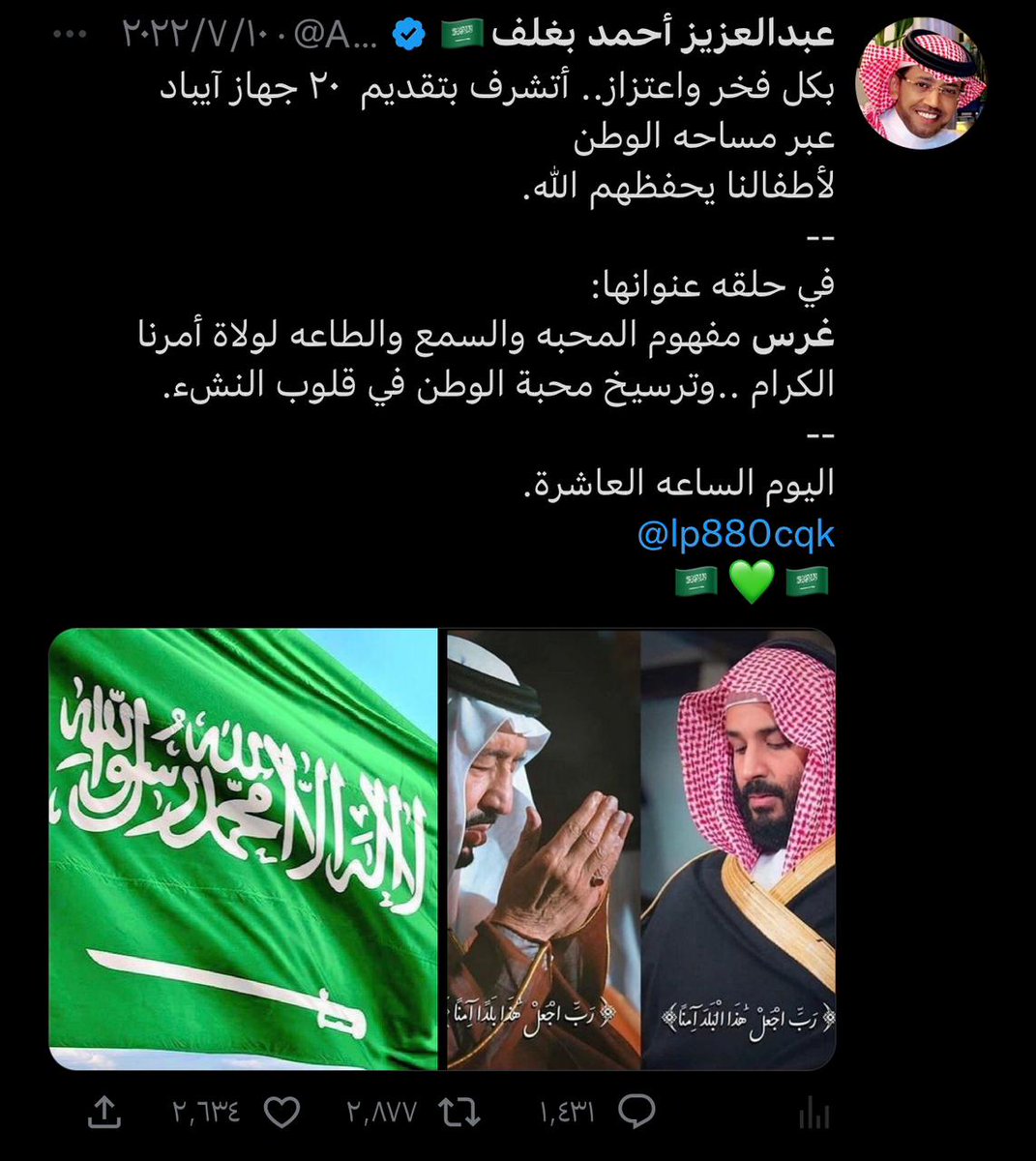 فخر و محبة بـ سيدي القائد المُلهم ولي العهد محمد بن سلمان ، كان لابن الوطن البـار وقفة حب وولاء وانتماء 💚🇸🇦 حيث قدم