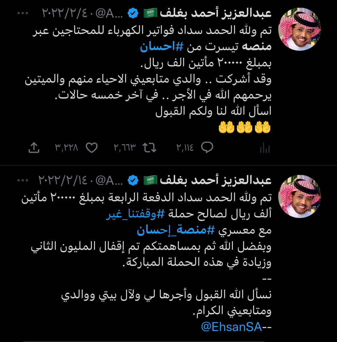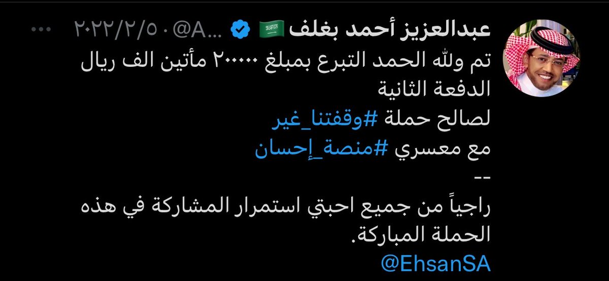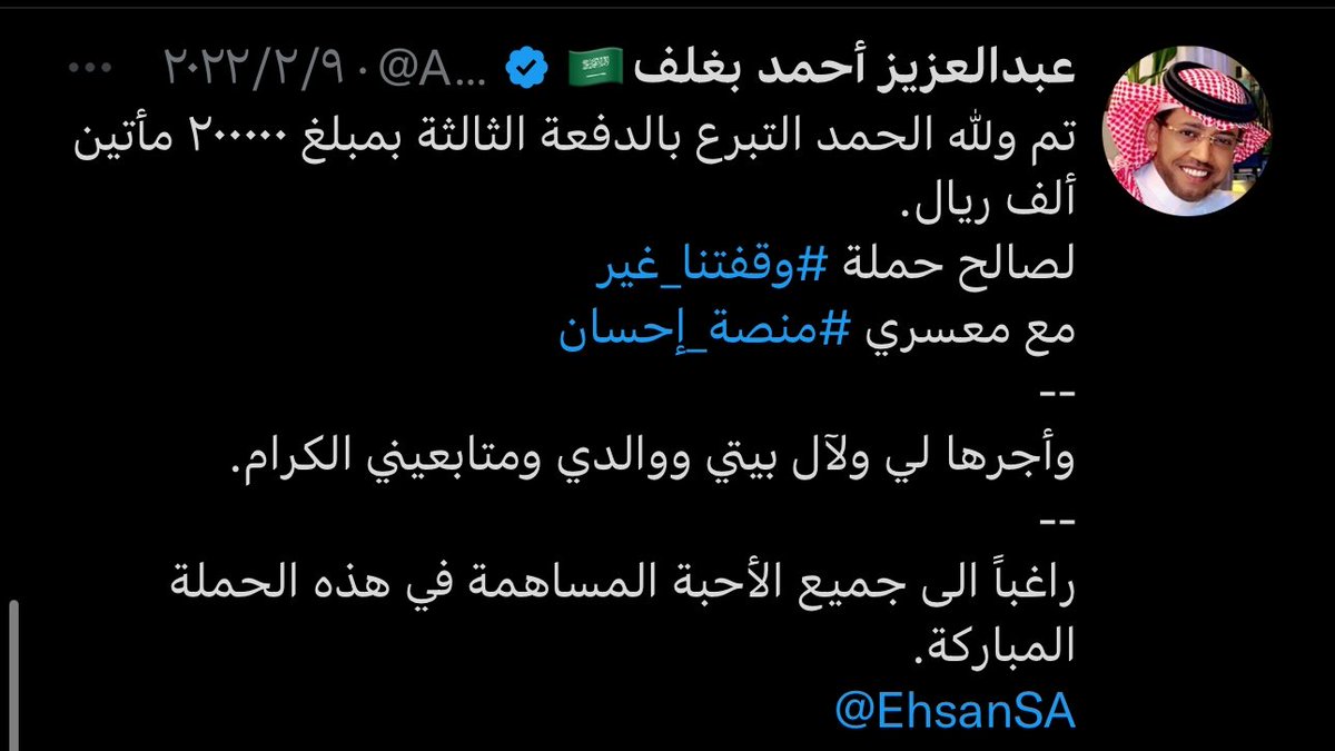 في كل منصة خيرية تجد اسم عبدالعزيز بغلف دعم المنصات الخيرية