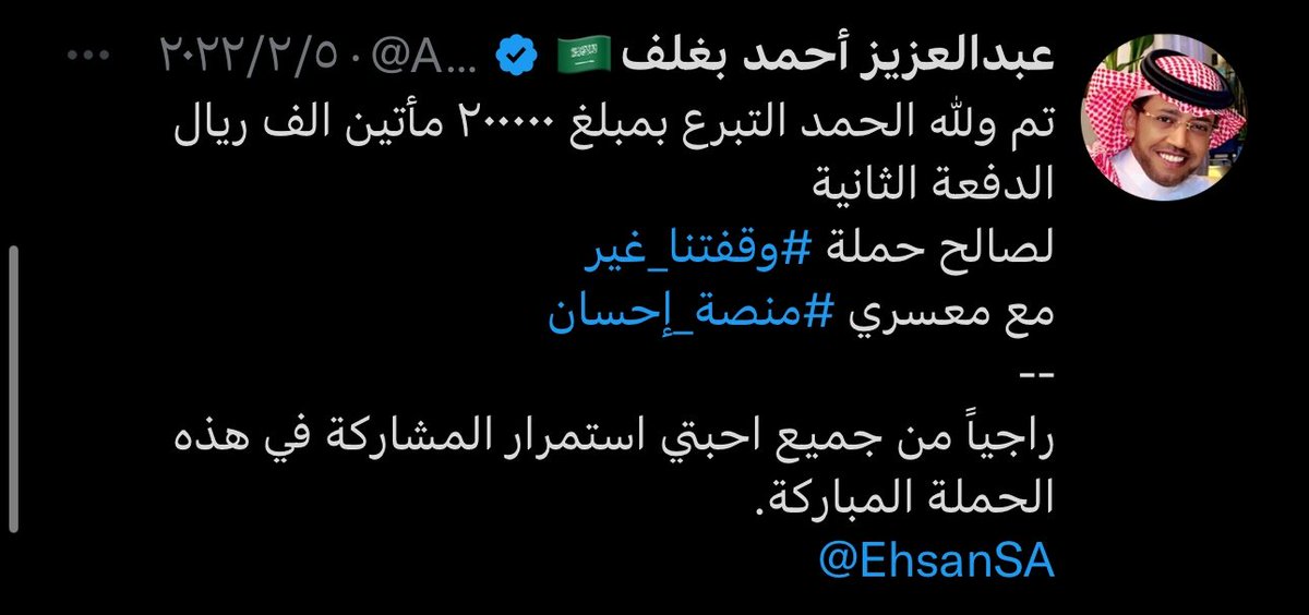تبرُع سخـي لـ مُعسري منصة احسان ،