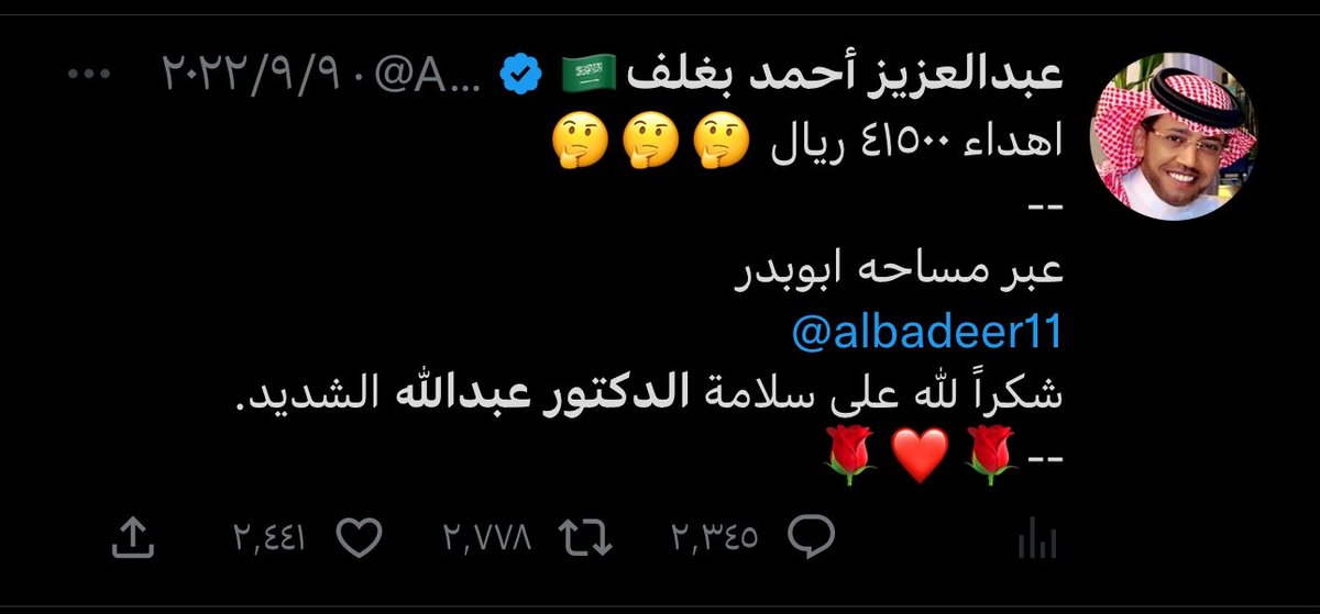 لا شيء يضاهي فرحته بمناسبة شفاء الدكتور عبدالله ، حيث قدم مبالغ ماليه وساعات ابل فرحًا بهذه المناسبة ❤️🌹❤️