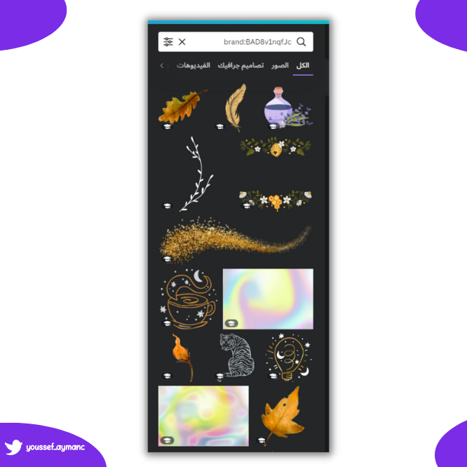 ♦كانفا يوفر لك مجموعة ضخمة من الأكواد اللي تقدر من خلالها تجيب عناصر رهيبة تساعدك على اظهار احترافيتك في كانفا.