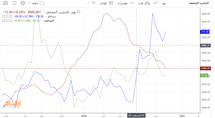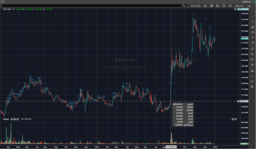 حيث تشكل منتجات الحليب 62% من اجمالي إيرادات الشركة لعام 2021 حسب اخر تقرير لمجلس الإدارة، مما أدى الى ارتفاع ارباحهم و بالتالي ارتفاع سعر السهم بشكل ملحوظ.