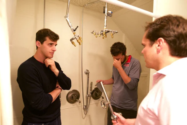 فطلب منه تجربة الدش ولكن الدش لم يكن جاهزا