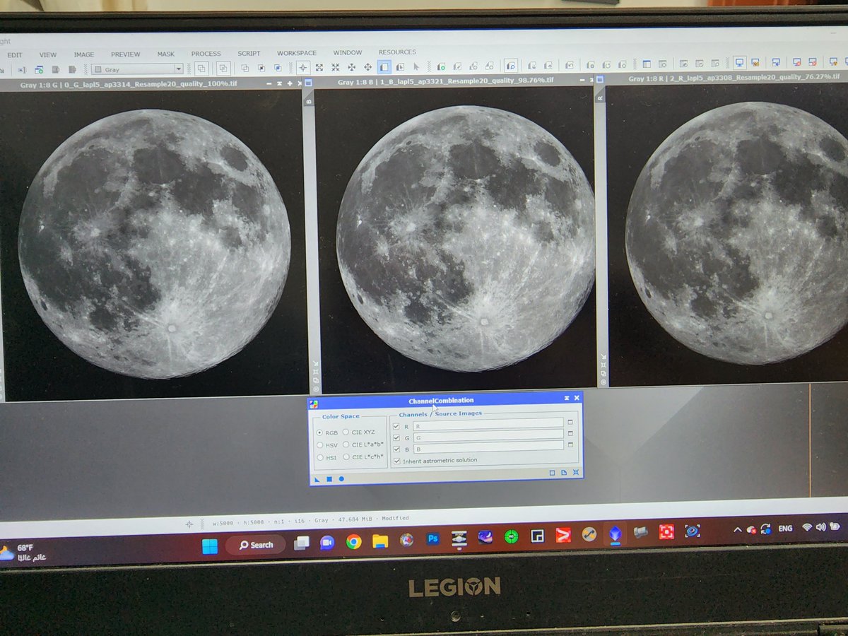 بعد ما دمجنا ال 3 قنوات وصار عندنا صورة ملونة RGB .. ندخل الصورة في برنامج RegiStax عشان نزيد من حدة تفاصيل القمر.