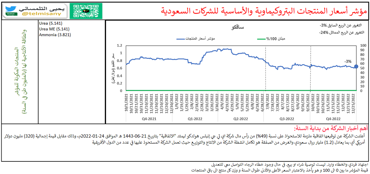 مؤشر اسعار شركة #سابك_للمغذيات_الزراعية من بداية 2022 الى نهاية الربع الرابع 2022:
