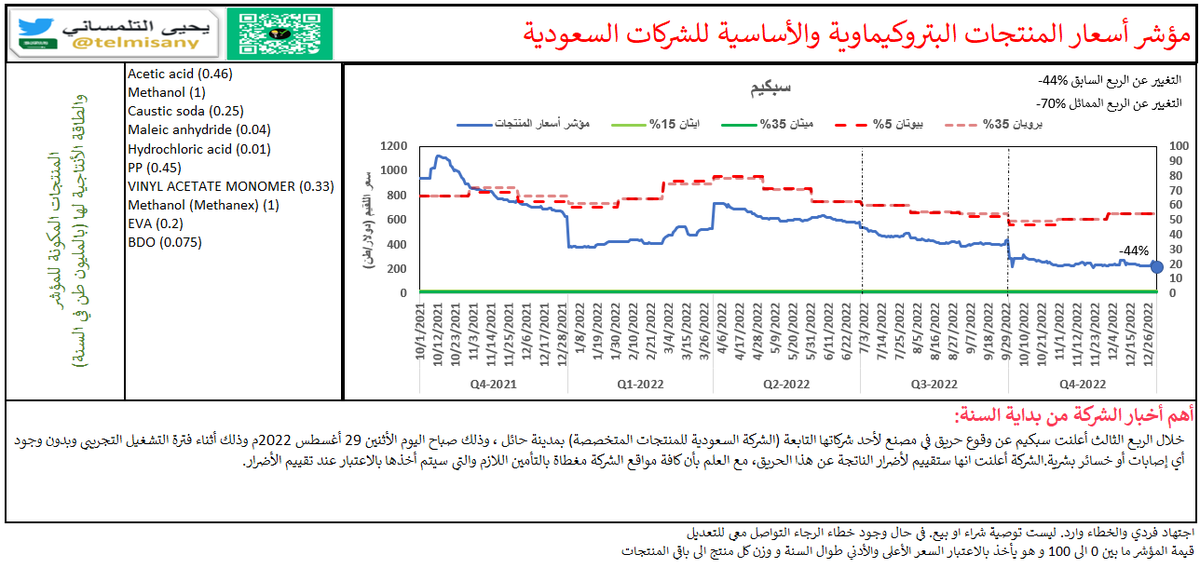 مؤشر اسعار شركة #سبكيم من بداية 2022 الى نهاية الربع الرابع 2022:
