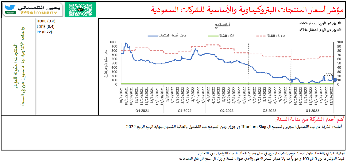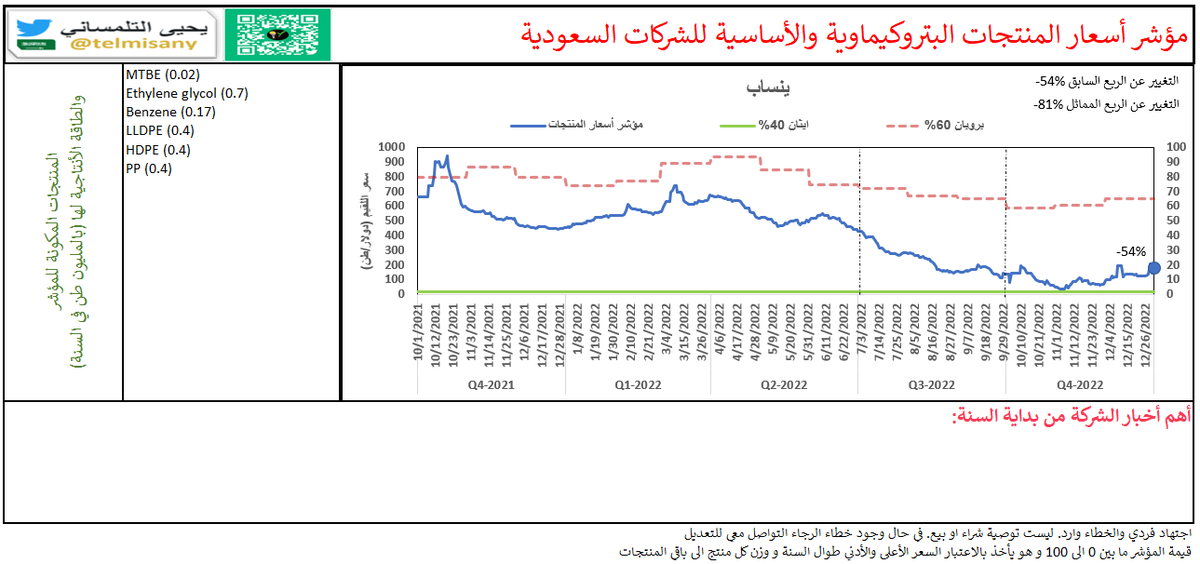 تحديث مؤشر اسعار المنتجات البتروكيماوية بنهاية الربع الرابع 2022: