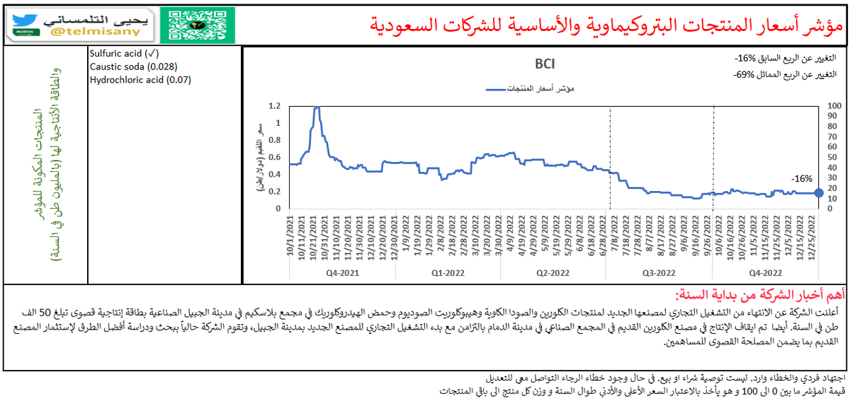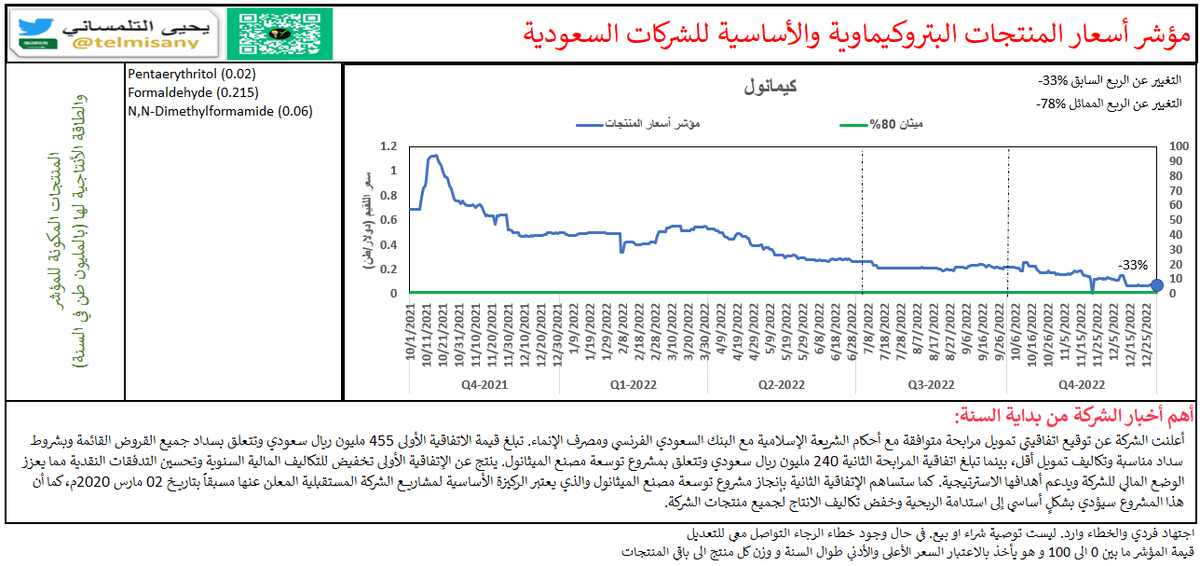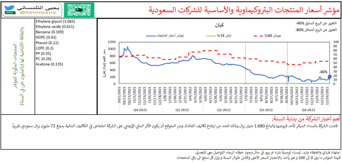 مؤشر اسعار شركة #كيمانول من بداية 2022 الى نهاية الربع الرابع 2022: