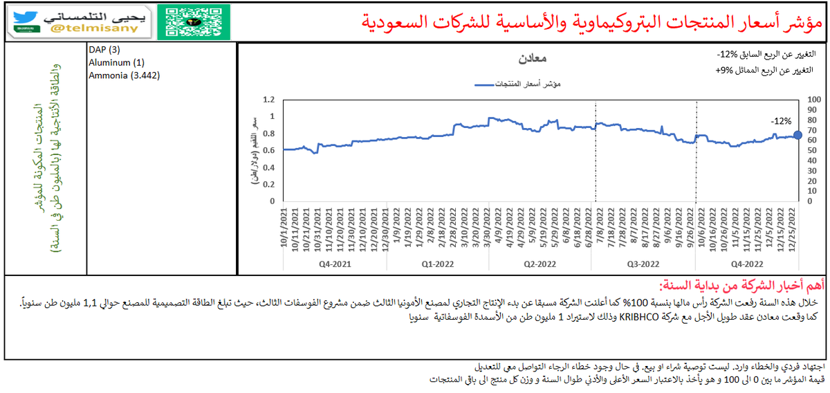 مؤشر اسعار شركة #معادن من بداية 2022 الى نهاية الربع الرابع 2022:
