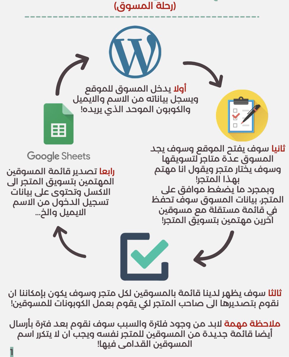 طبعا اذا المسوق مهتم بمتجر معين عليه فقط ان يطلب كوبون وبعدها تلقائيا يسجل اسمه وايميله في ملف الاكسل ونرسل هذا الملف للتاجر والتاجر يرسل ايميل للمسوق يحتوى على كوده عشان يبدا يسوق👌🏻