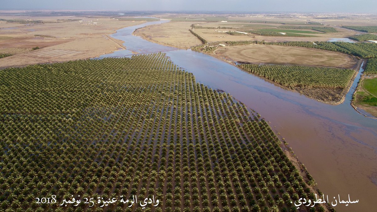 ويشار إلى أن #وادي_الرمة قبل حوالي 10000 سنة وفي العصور المطيرة كان نهراً عظيماً يجري من شرق #المدينة ويصب في شط العرب قريباً من جبل سنام عبر وادي الأجردي والباطن وبطول يصل إلى 1200 كم تقريباً، وبعد عصور الجفاف الطويلة والقاسية انفصلا وادي