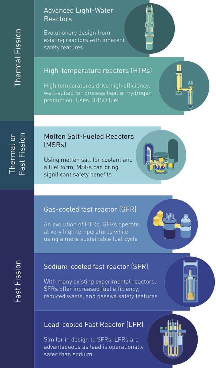Reattori raffreddati ad acqua sono 'termici', mentre più reattori avanzati sono "veloci": i neutroni non sono rallentati, hanno più energia e probabilità di fissione; per spiegazioni dettagliate consiglio questo e altri articoli di ⬇️ /5