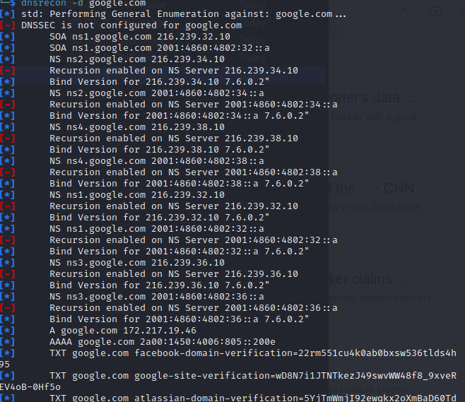 dnsrecon -d google.com