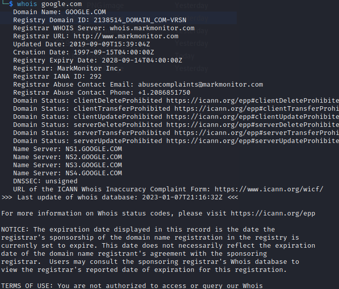 أيضا أمر whois في كالي، وموقع whois-history.whoisxmlapi.com لجمع المعلومات التاريخه عن تسجيل النطاق وهي أحد الطرق المستخدمه في تخطي حماية معلومات التسجيل.