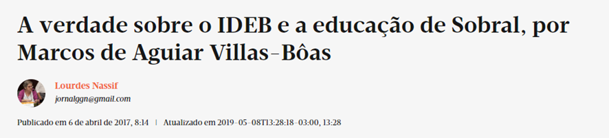 6) Marcos de Aguiar Villas-Bôas, doutor pela PUC-SP e ex-secretário do Trabalho e Desenvolvimento Econômico de Sobral (CE) na gestão de Ivo Gomes, sustenta que os dados de Sobral são manipulados. Para Villas-Bôas, a educação sobralense adota como foco o treinamento para testes
