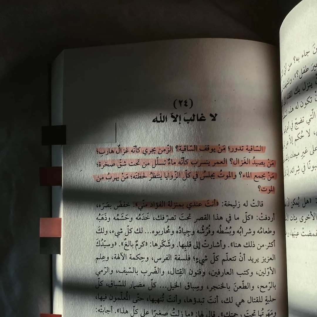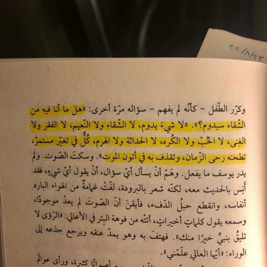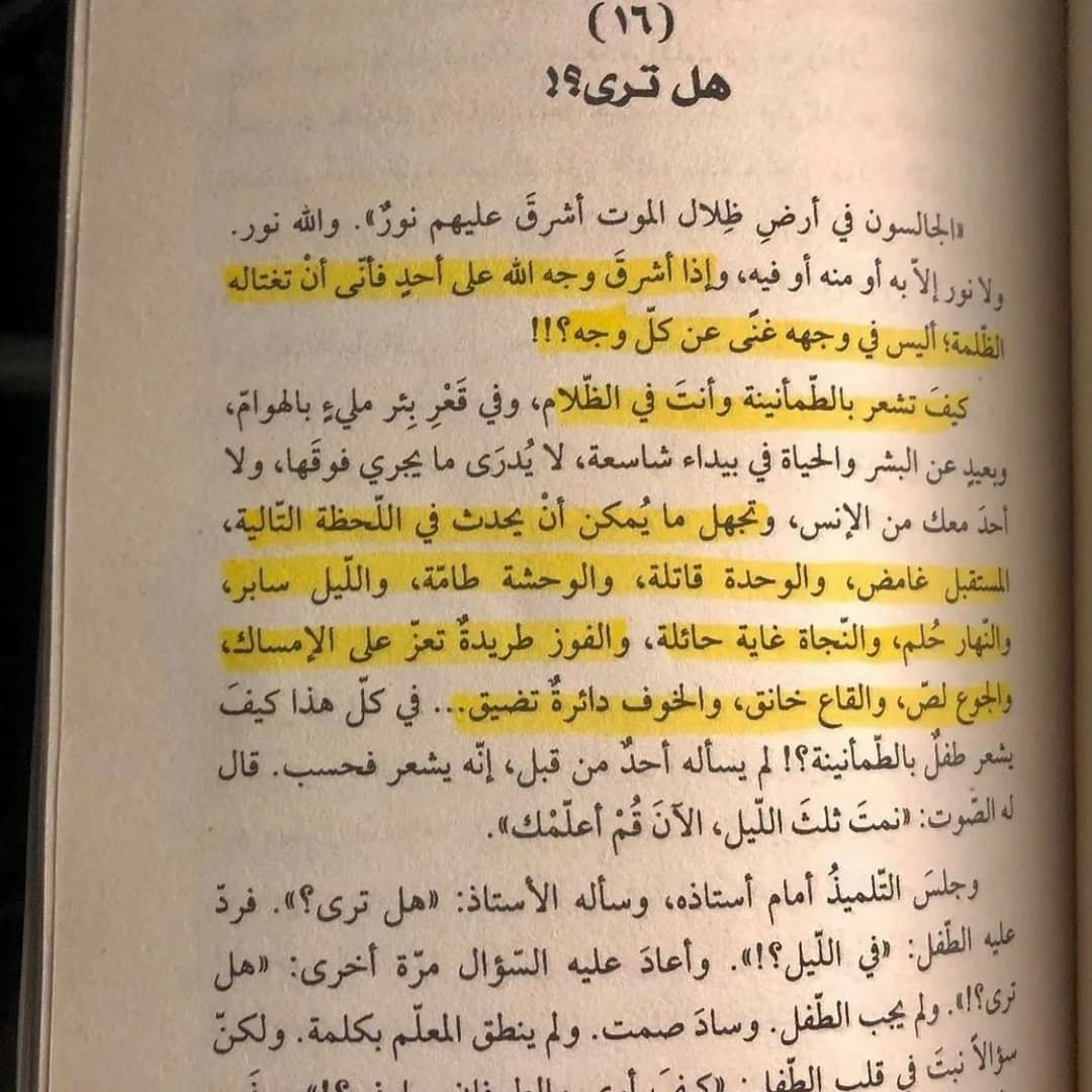 "بعض الاسئلة هواجس ليست حقائق. بعضها صامت لا يتكلم، لكنه يُسمع، لا تقل لي كيف، إنه يُسمع ولو لم يكن له لسان. بعضها فحيح إبليس الذي يعيش فيك. بعضها محرزٌ غي الخاصرة لا يهدأ ما دمت تسير. بعضها جنون، بعضها تشف. وبعضها إنتقام من كل شيء"