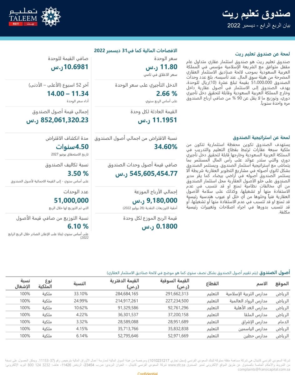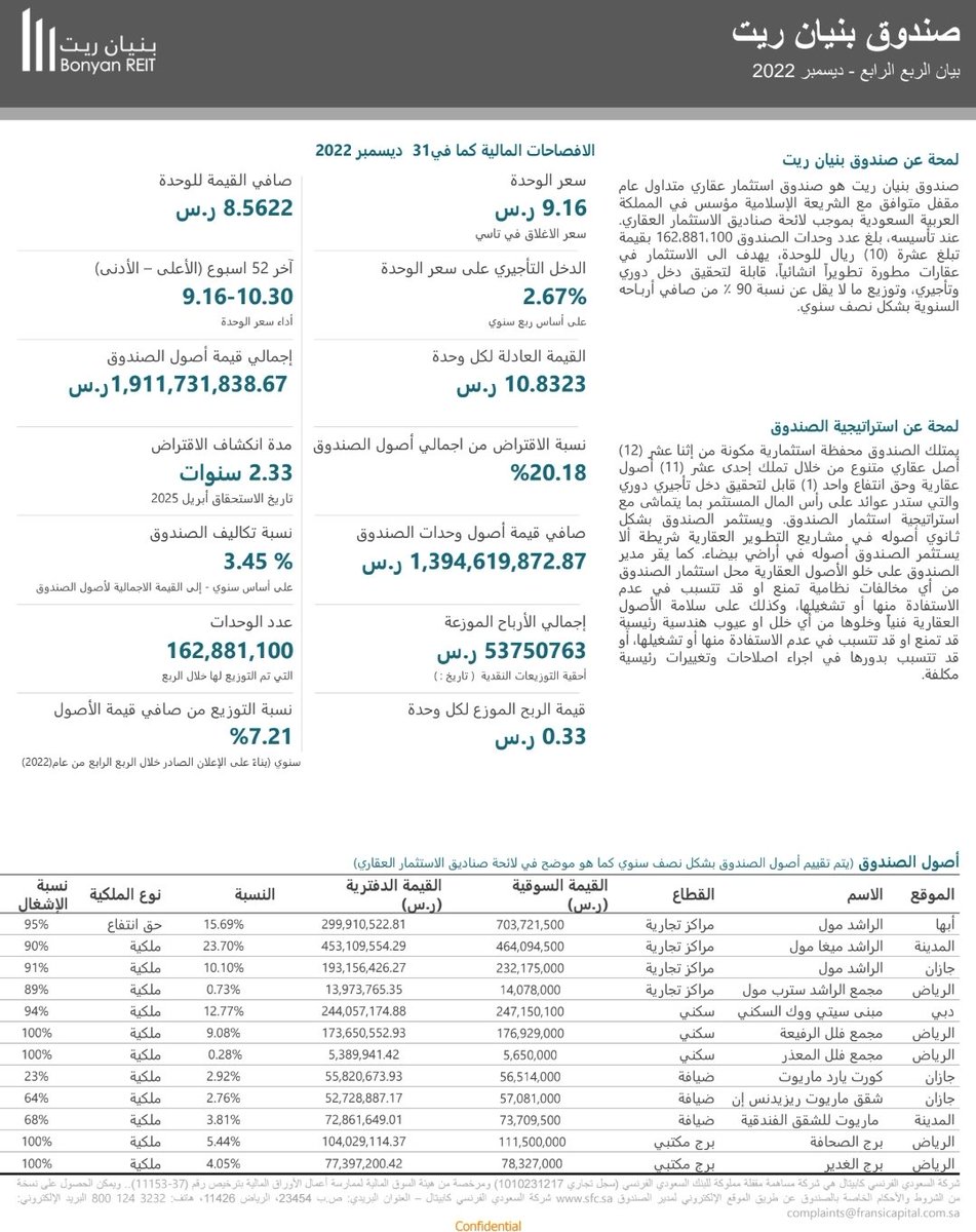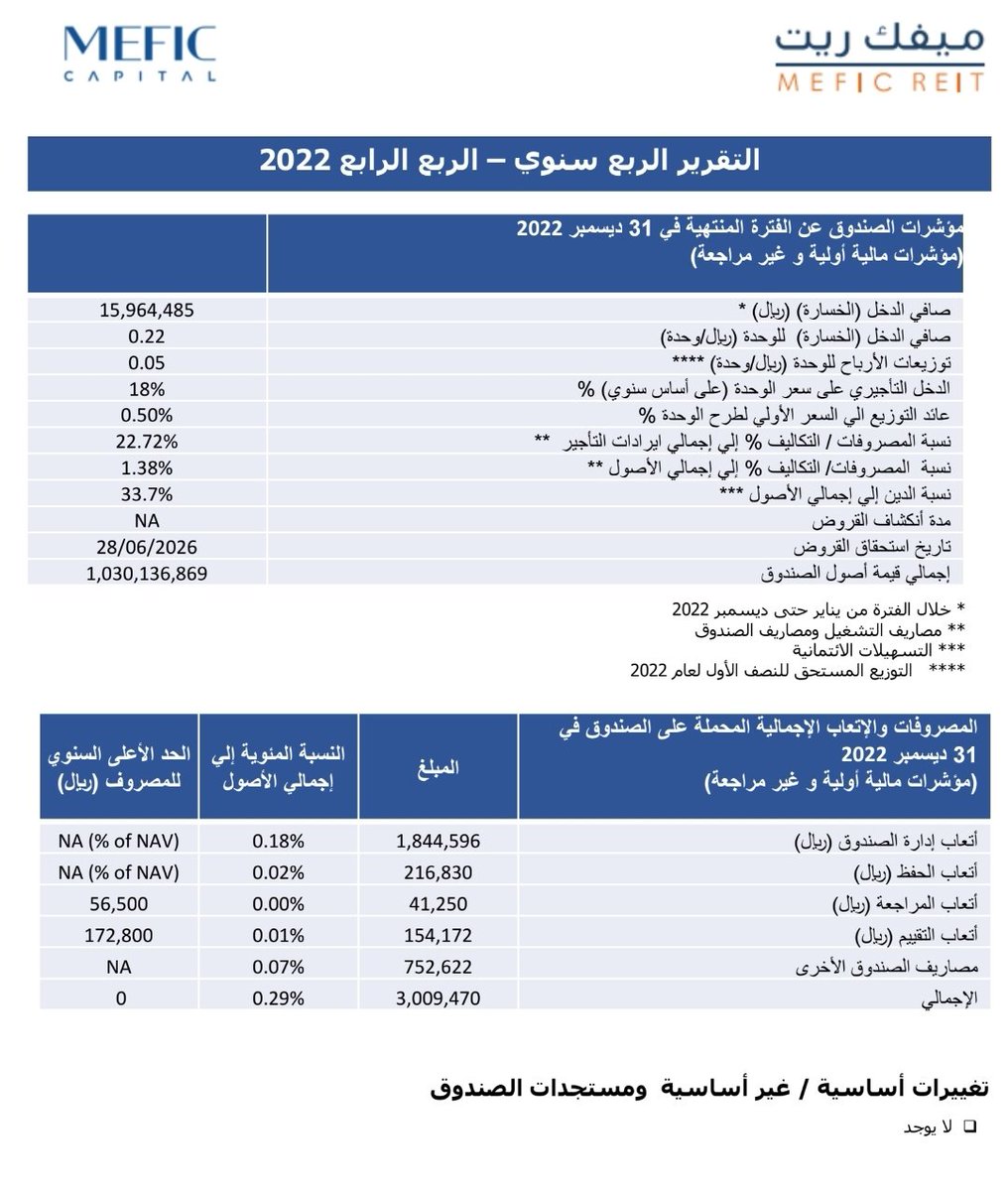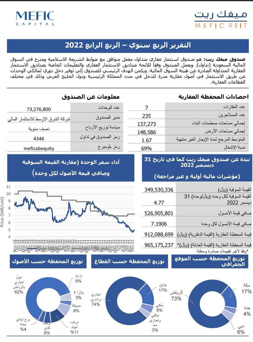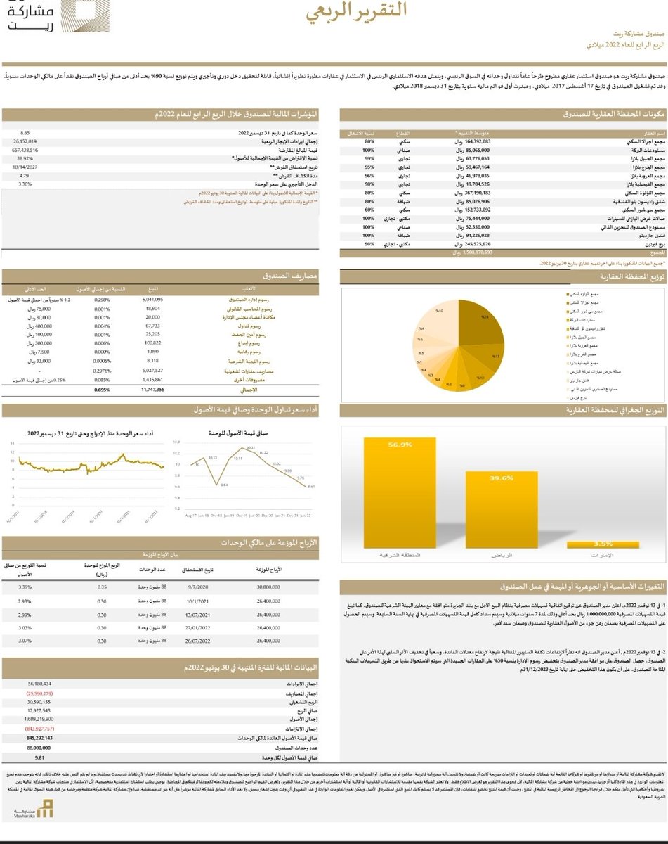 🌟 #ثريد_مستثمر_ملائكي | يعرض فيه تقارير الربع الرابع لعام 2022 لجميع #صناديق_الريت