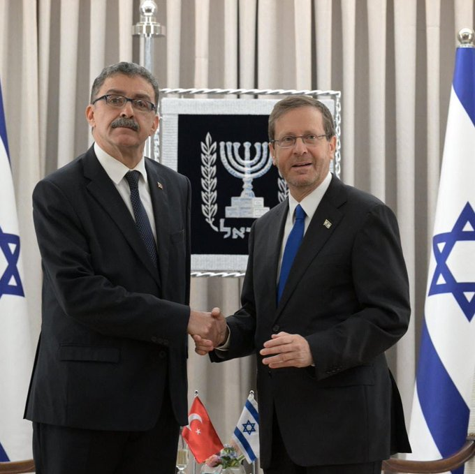 السفير التركي شاكر تورونلار للرئيس الإسرائيلي: " #تركيا أول دولة تعترف بإسرائيل.. لم تكن تركيا والأتراك ضد قيام دولة #إسرائيل أو ضد #اليهود "